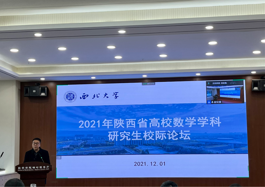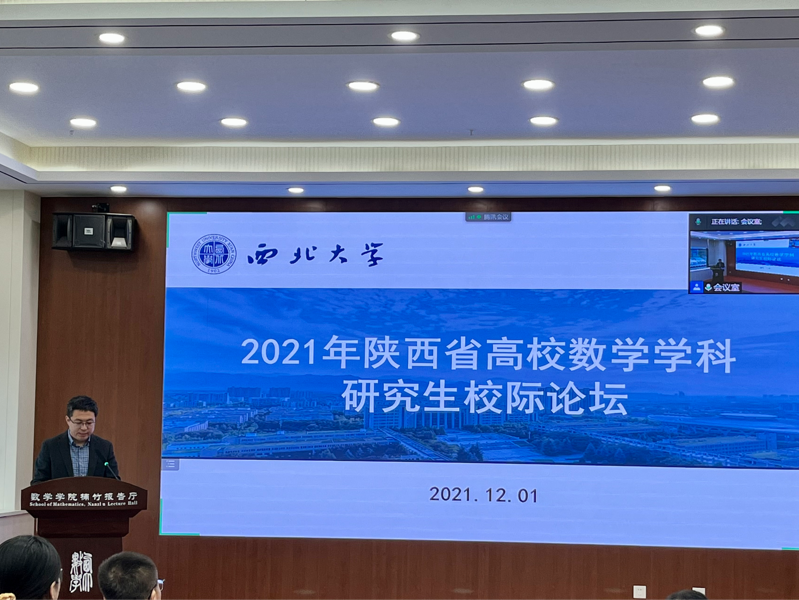 12月1日,2021年陕西省高校数学学科研究生校际论坛在8455新葡萄官网版长安校区召开。来自西安交通大学、西北工业大学、西安电子科技大学、陕西师范大学的各位同学及我校师生代表参加此次活动。开幕式由学院党委副书记王理鹏主持。