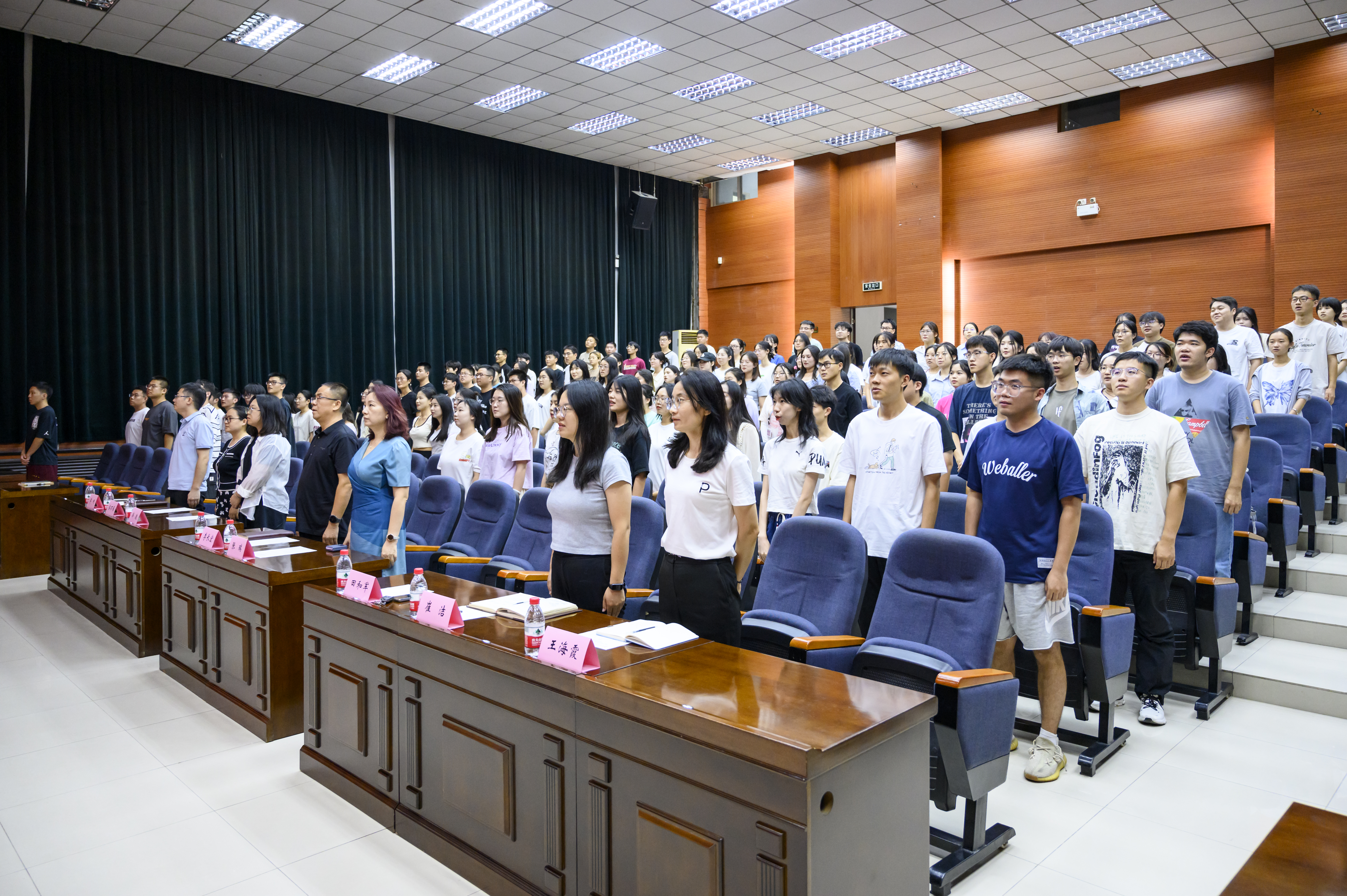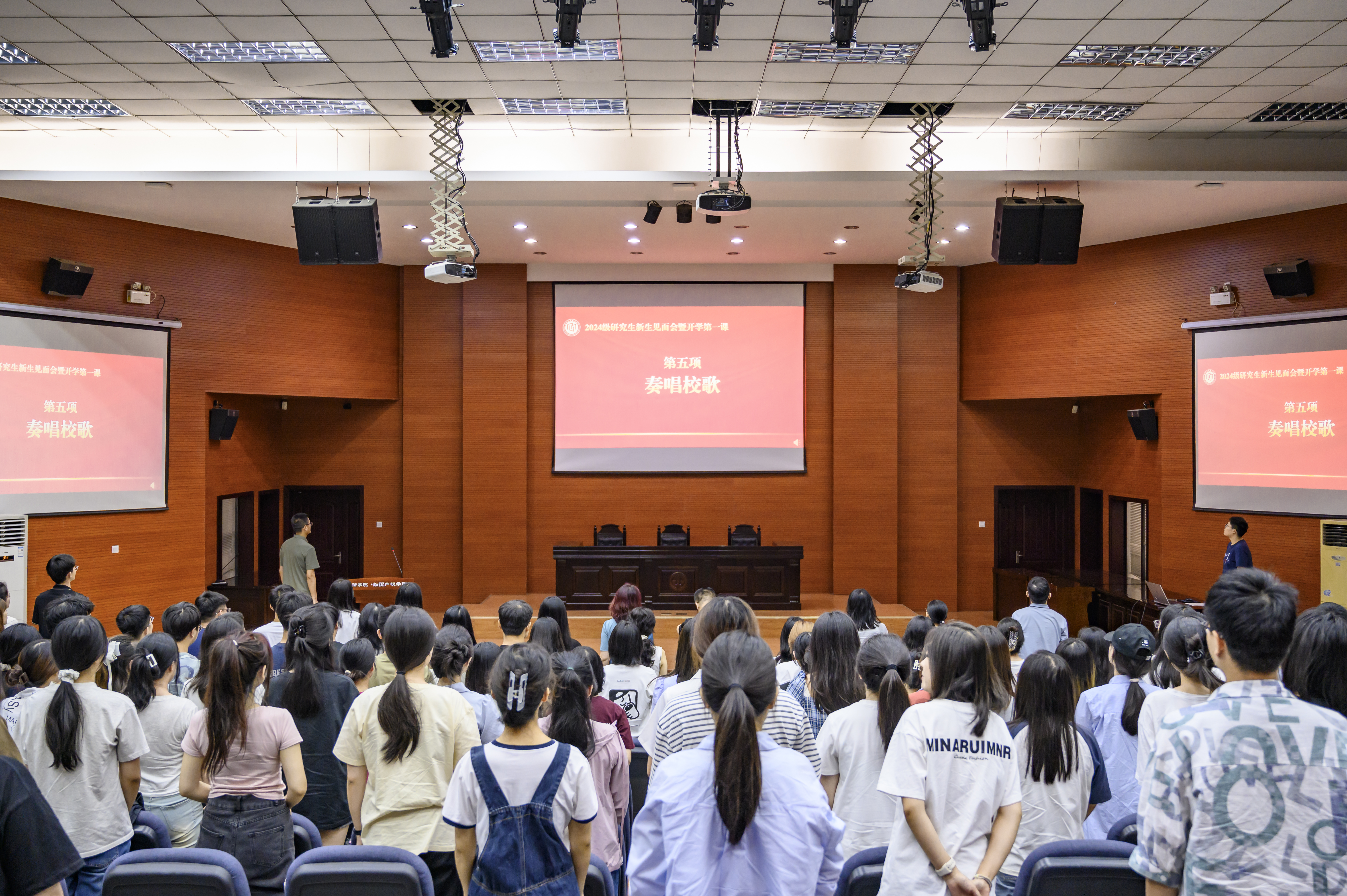 在雄壮的国歌声中,8455新葡萄官网版2024级研究生新生见面会暨开学第一课正式拉开帷幕。