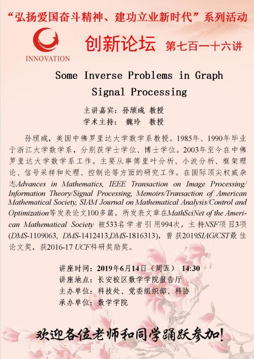 8455新葡萄官网版创新论坛第七百一十六讲:Some Inverse Problems in Graph Signal Processing