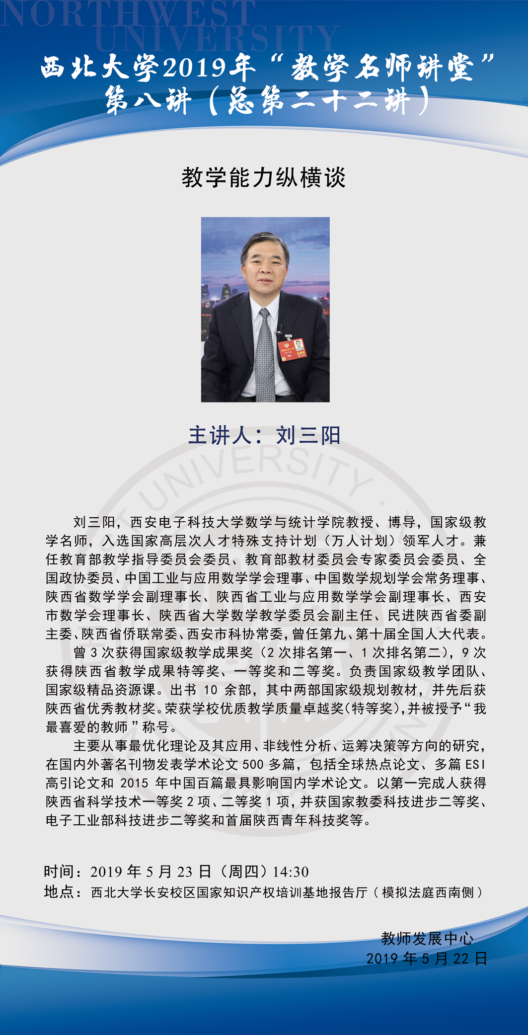 8455新葡萄官网版2019年“教学名师讲堂”第八讲:教学能力纵横谈