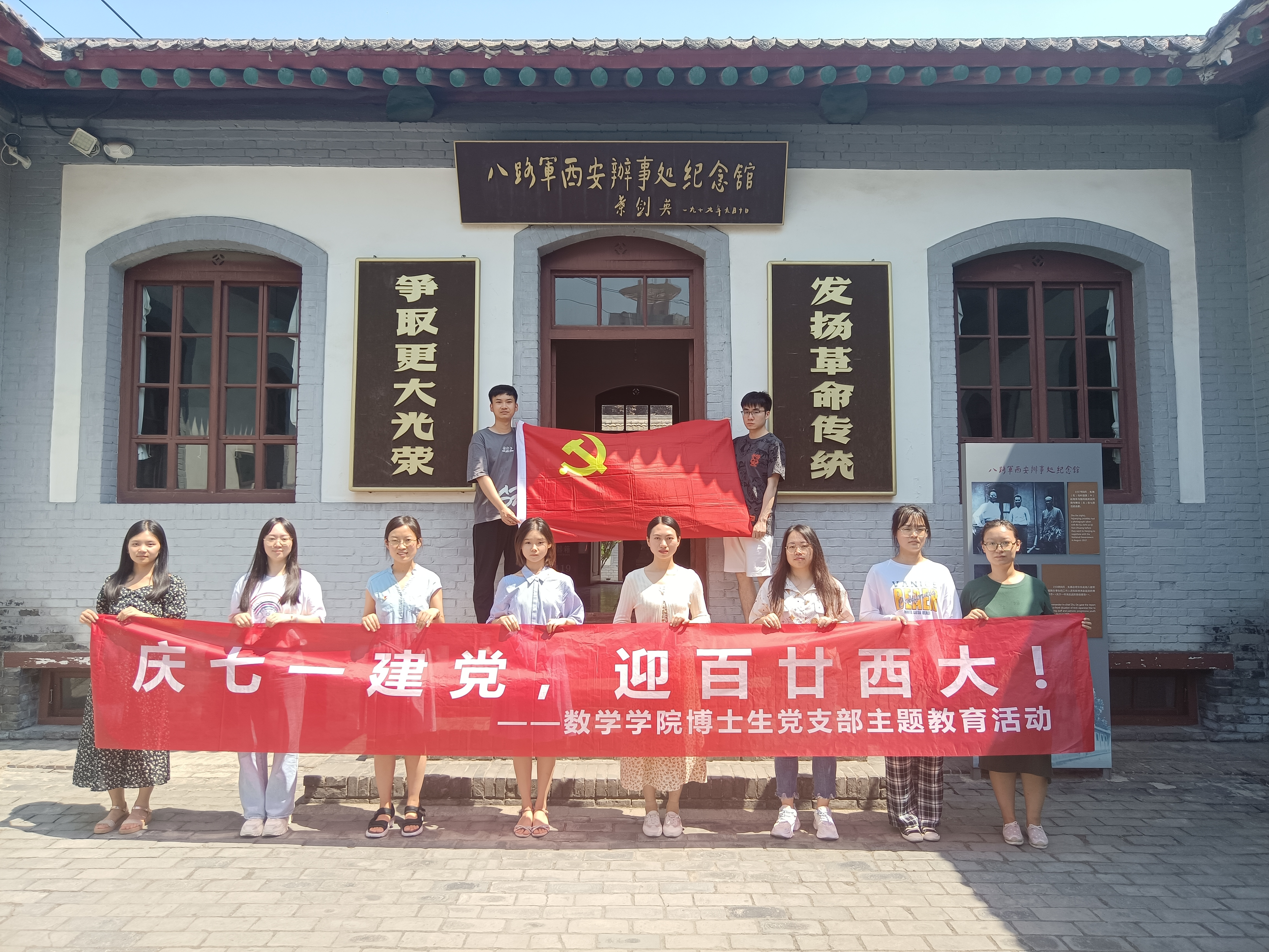在中国共产党成立101周年和8455新葡萄官网版建校120周年之际,为深入学习贯彻习近平新时代中国特色社会主义思想,不忘初心,牢记使命,加强支部党员和积极分子知史爱党、知史爱国教育,2022年6月30日上午,8455新葡萄官网版博士生党支部赴八路军西安办事处纪念馆开展“庆七一建党,迎百廿西大”主题党日活动,重温革命先烈的光辉事迹,接受革命传统教育的洗礼。