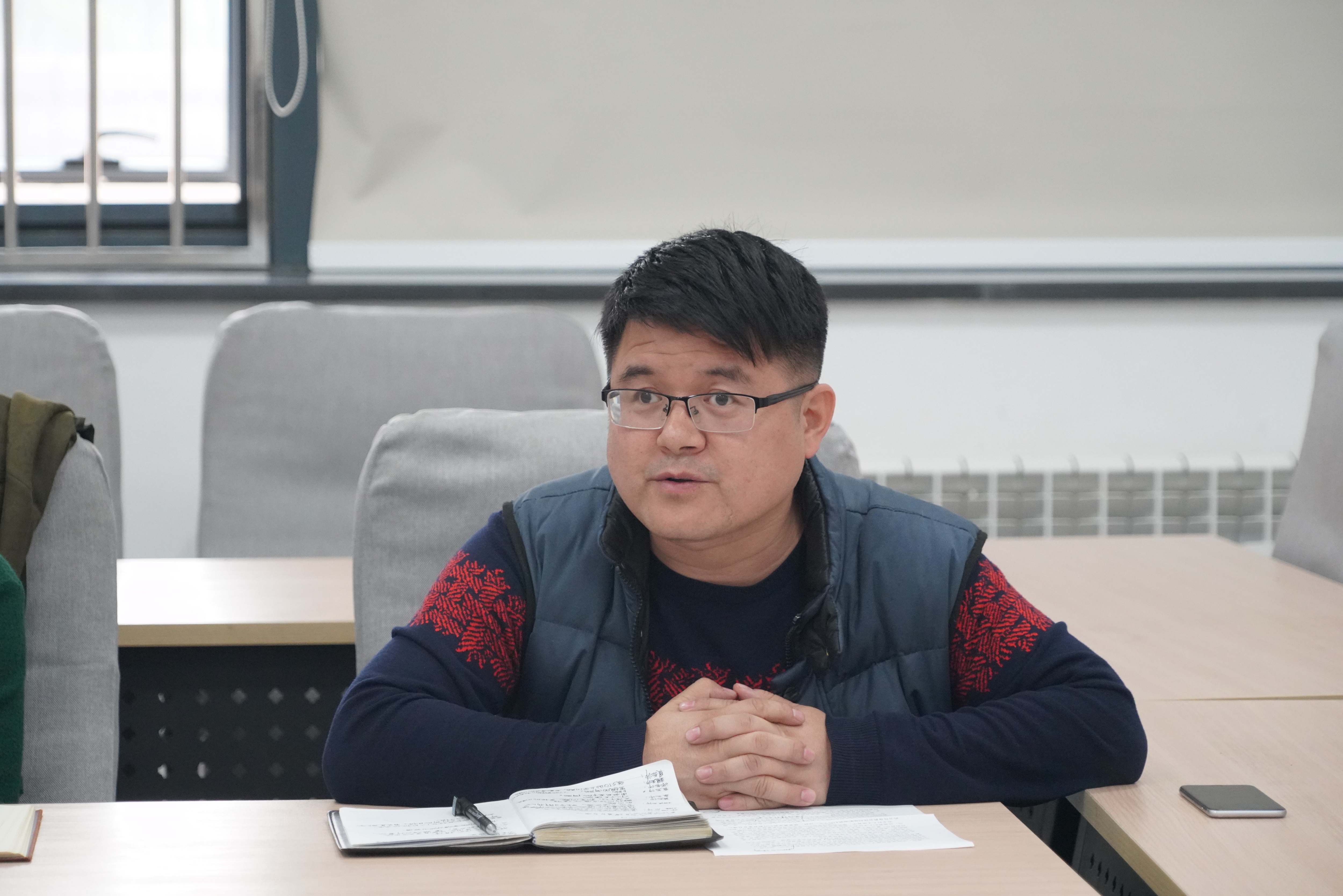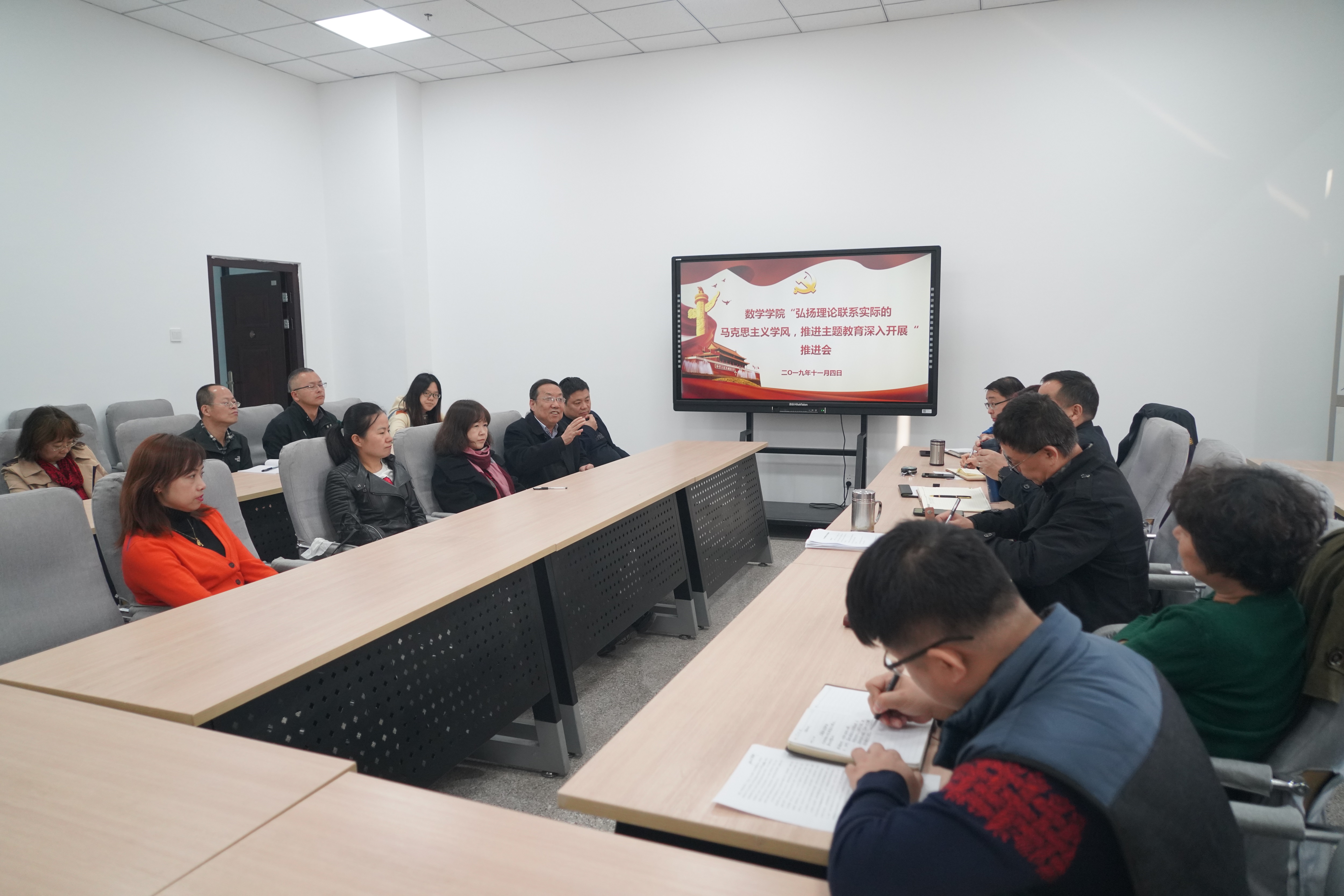 11月4日下午,8455新葡萄官网版党委在学院一层会议室召开“大力弘扬理论联系实际的马克思主义学风”主题教育工作推进会。学院党政班子成员、党委委员、党支部书记及无行政级别实体机构负责人参加活动,党委书记李长宏主持。
