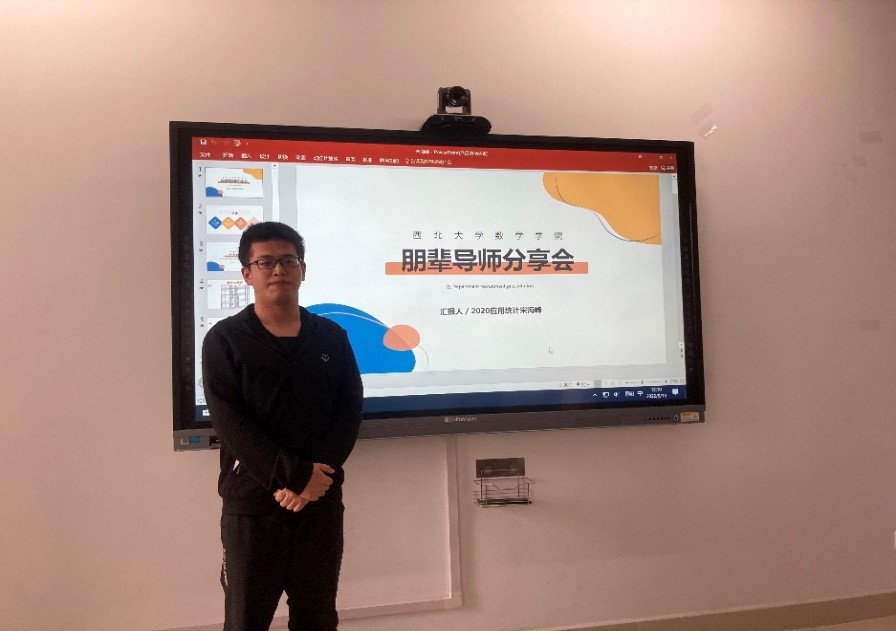 2020级应用统计学专业本科生宋海峰给大家介绍了8455新葡萄官网版同学未来的发展方向。宋海峰学长主要从本科生毕业去向,各专业主要学习内容及学科特点,考研考试科目等方面进行了详细的讲解。针对大学生活,他建议大家以学业为主,在掌握好专业知识的前提下可以多参加社团活动提升自己的综合能力。同时强调要研精覃思,行远自迩,努力提高专业技能。