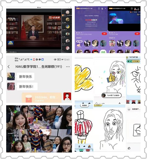 学院党委书记李长宏老师、党委副书记王理鹏老师、教学副院长邵勇老师、行政副院长杨喆老师、全体辅导员、班主任分别参加本科各年级“同心抗疫喜迎元旦”线上联欢会,共同聆听习近平总书记发表2022新年贺词、参与线上团建活动、畅谈新年愿望,欢度跨年良宵,各班级、各宿舍举办云卡拉ok、你画我猜、棋王争霸、成语接龙等喜闻乐见的团建活动,感染学生同心战疫。