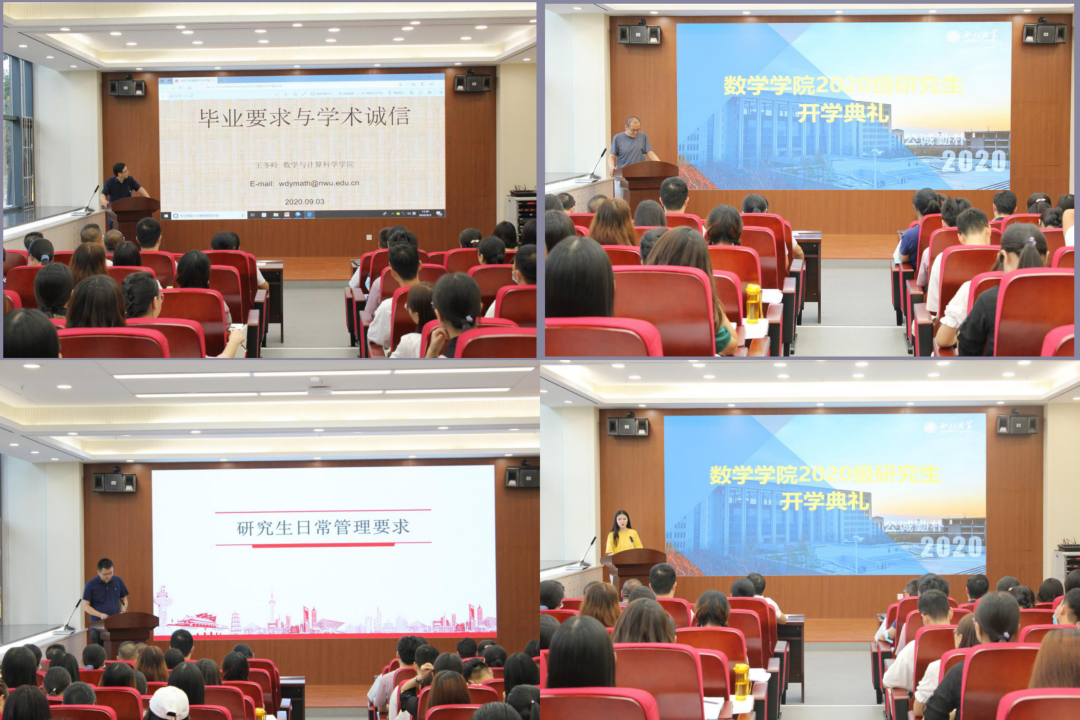 研究生学位秘书王冬岭副教授系统介绍了研究生奖学金评定、毕业基本要求、学术诚信等相关学术规章制度。辅导员李建璋老师主要从日常管理、校纪校规 、疫情防控、培养良好道德品质、遵纪守法等多个方面,给大家上了“开学第一课”。历智明副教授从班主任角度对研究生提出了建议:要心地善良、敬畏自然、 追求真理、心胸开阔、志向高远,尽快适应大学生到研究生的角色转换。2019级统计学硕士,8455新葡萄官网版第21届研究生支教团的成员张欣悦,作为新生代表发言。