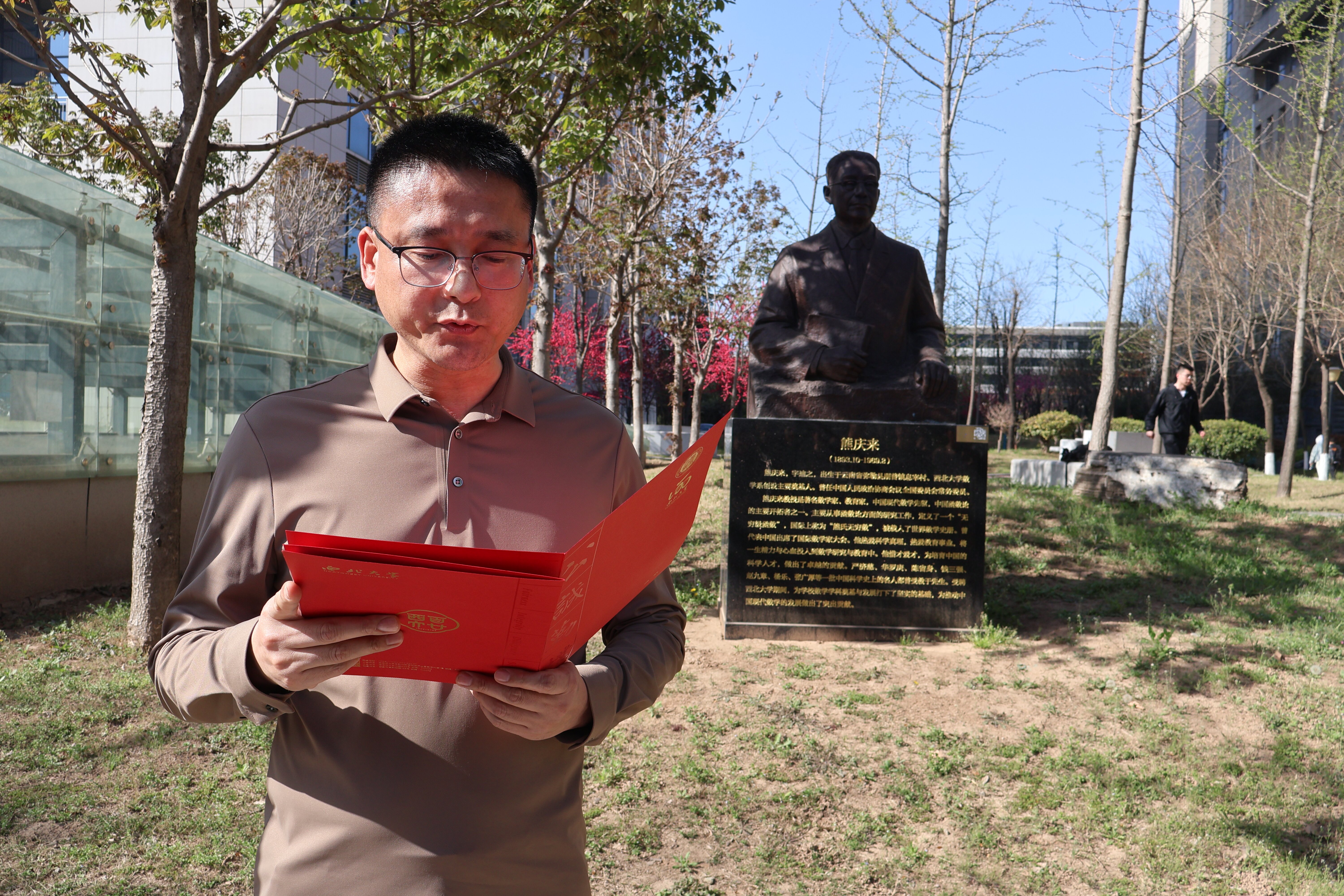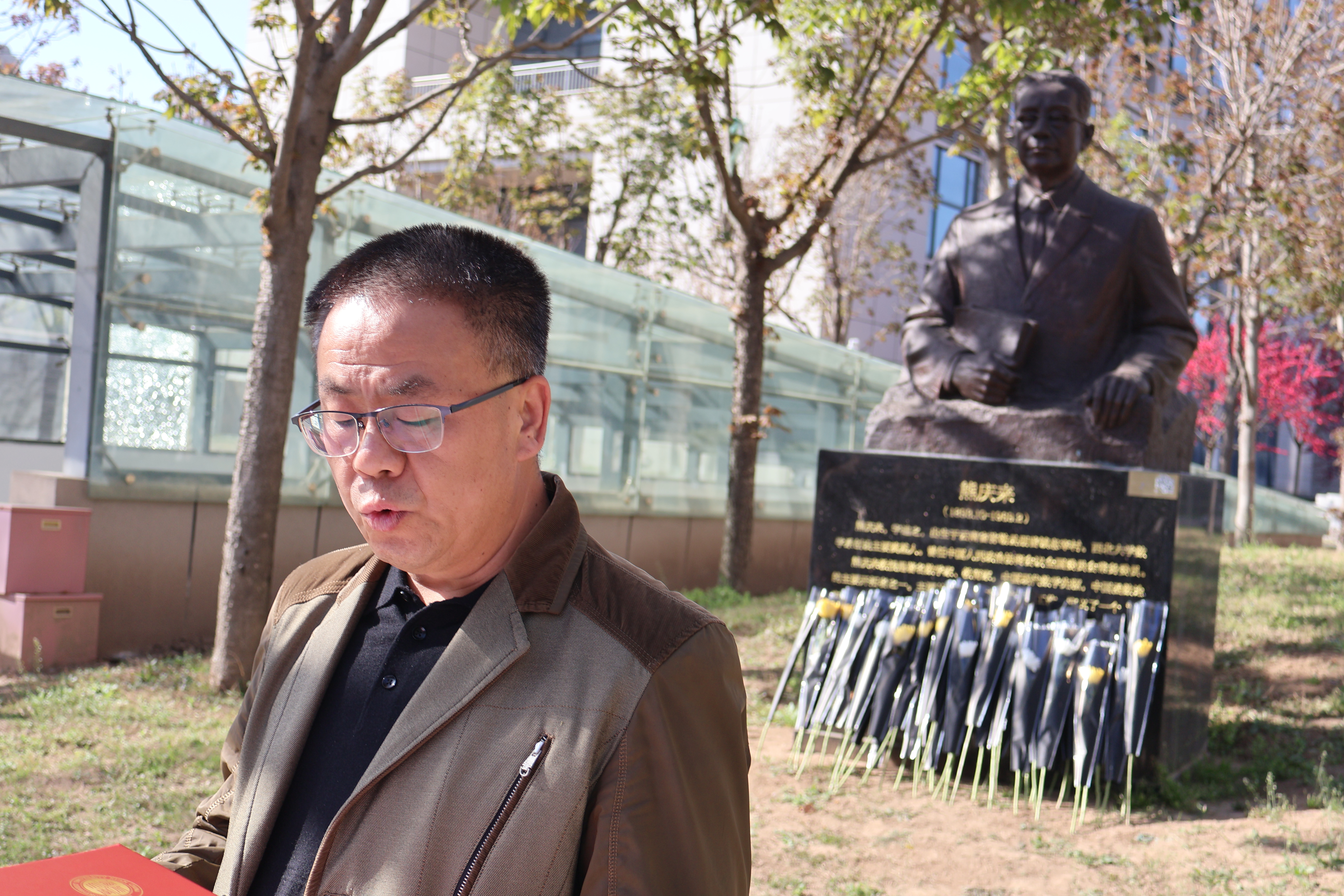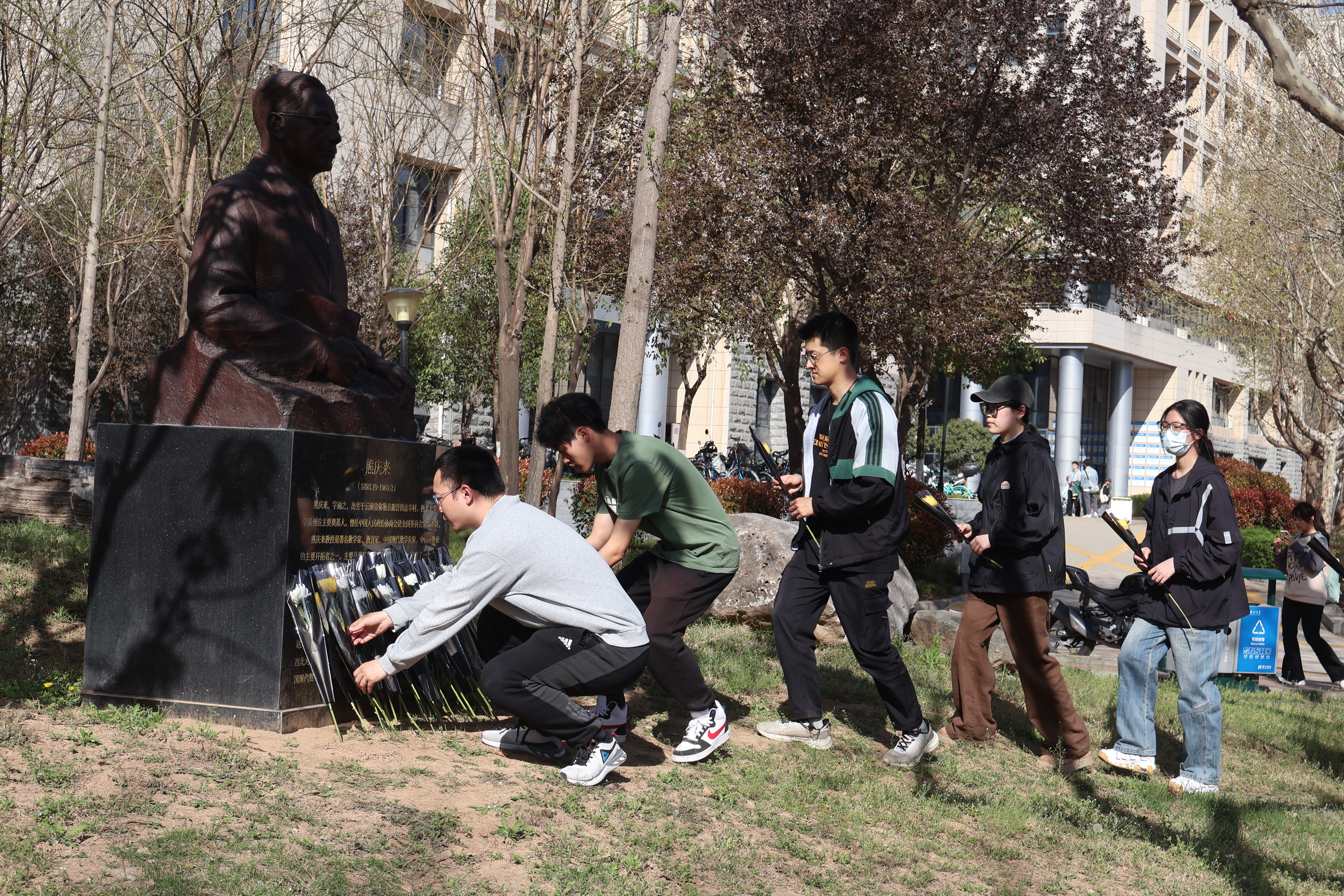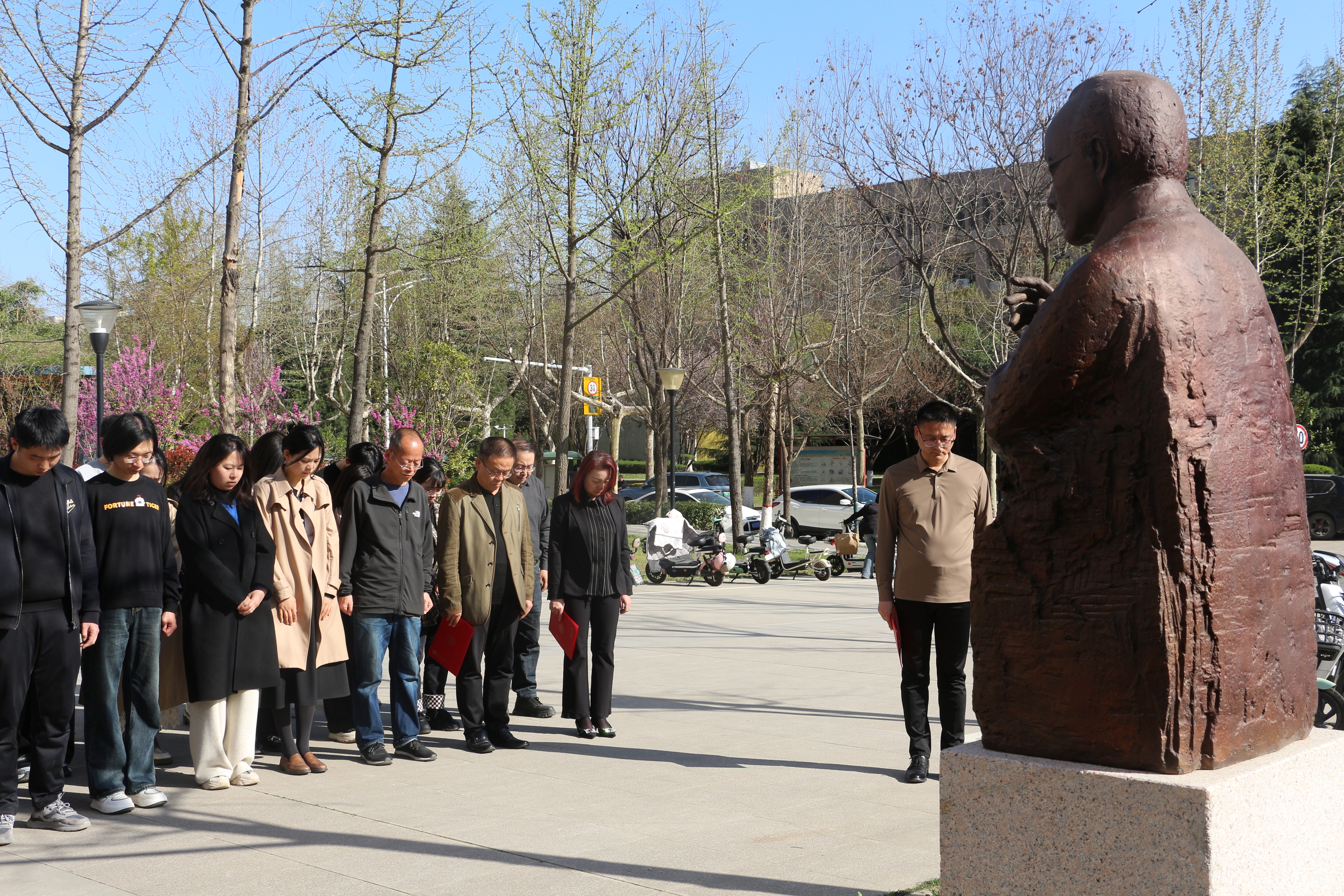 风清景明,踏春而行,学院师生代表聚集在熊庆来先生雕像前,共同缅怀熊庆来先生。参加纪念活动的师生为熊庆来先生默哀三分钟,随后三致深躬,依次向熊庆来先生雕像献花,表达对先生的深深敬意与缅怀。
