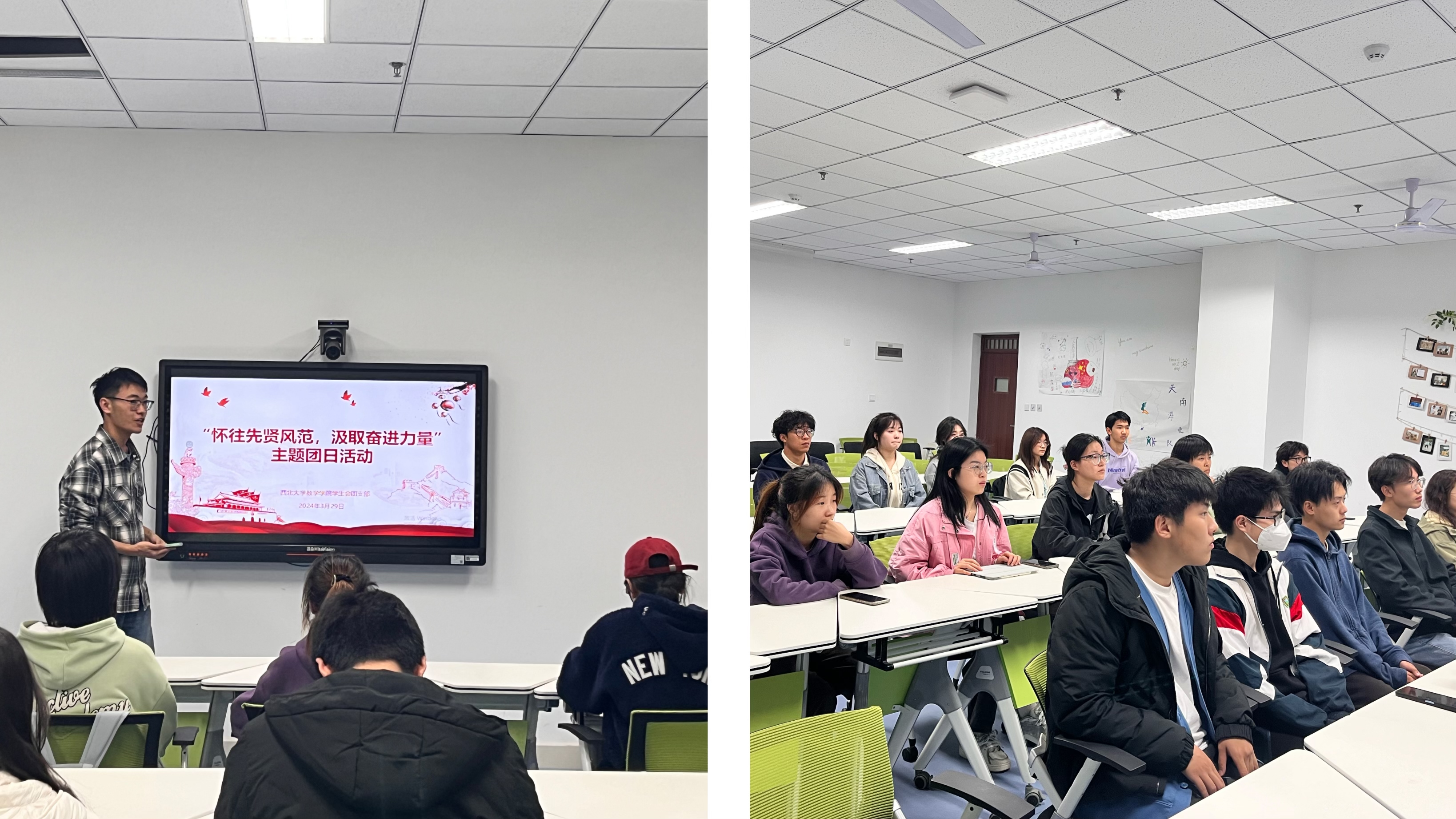 学生会团支部书记董国辉同学号召大家要秉承先辈的思想理念,努力学习科学文化知识,传承先辈崇高精神,为祖国的现代化建设做出自己的贡献,同时响应时代的号召,结合时代要求创新学术研究,立志做激流勇进的后浪,争做能够担当民族复兴大任的时代新人。
