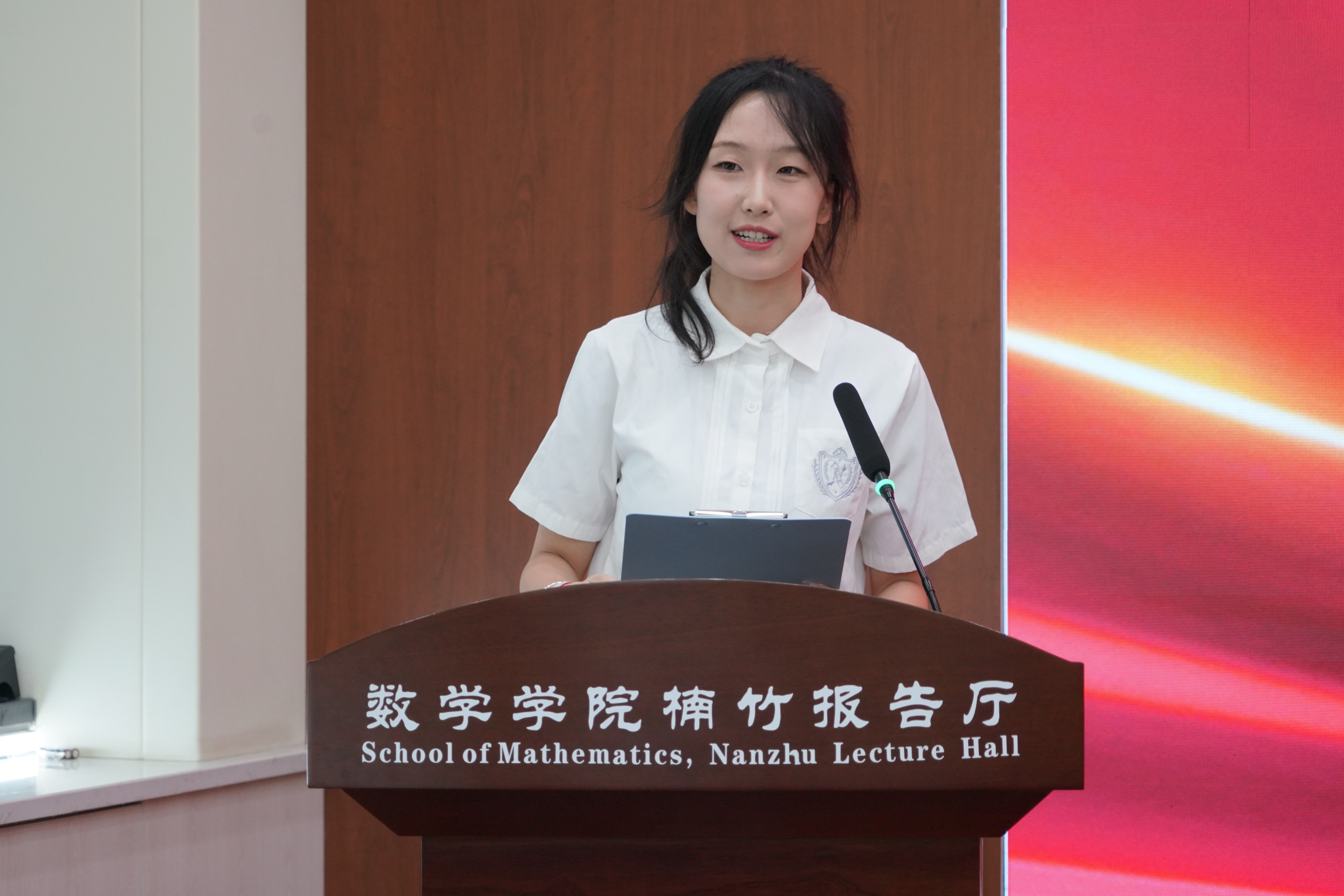 获奖学生代表史佳懿在发言中表达了对简劲宏先生、8455新葡萄官网版和8455新葡萄官网版的衷心感谢,并承诺将把此次荣誉化为学习的动力,传承和发扬西大数学人的光荣传统。