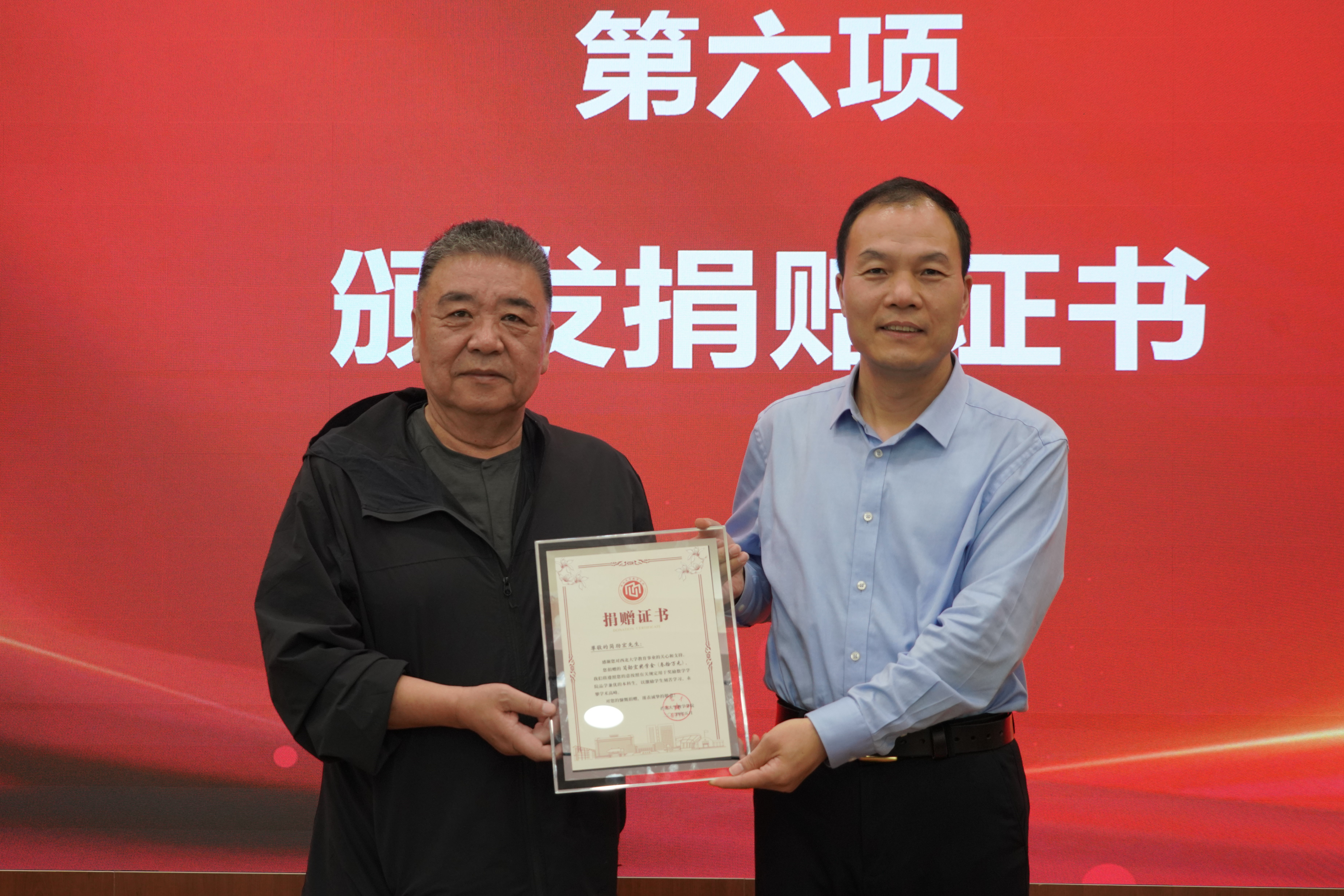 随后,杜勇部长宣读了2022-2023年度“简劲宏奖学金”表彰文件。简劲宏先生和赵传仁部长共同为获奖学生颁奖。