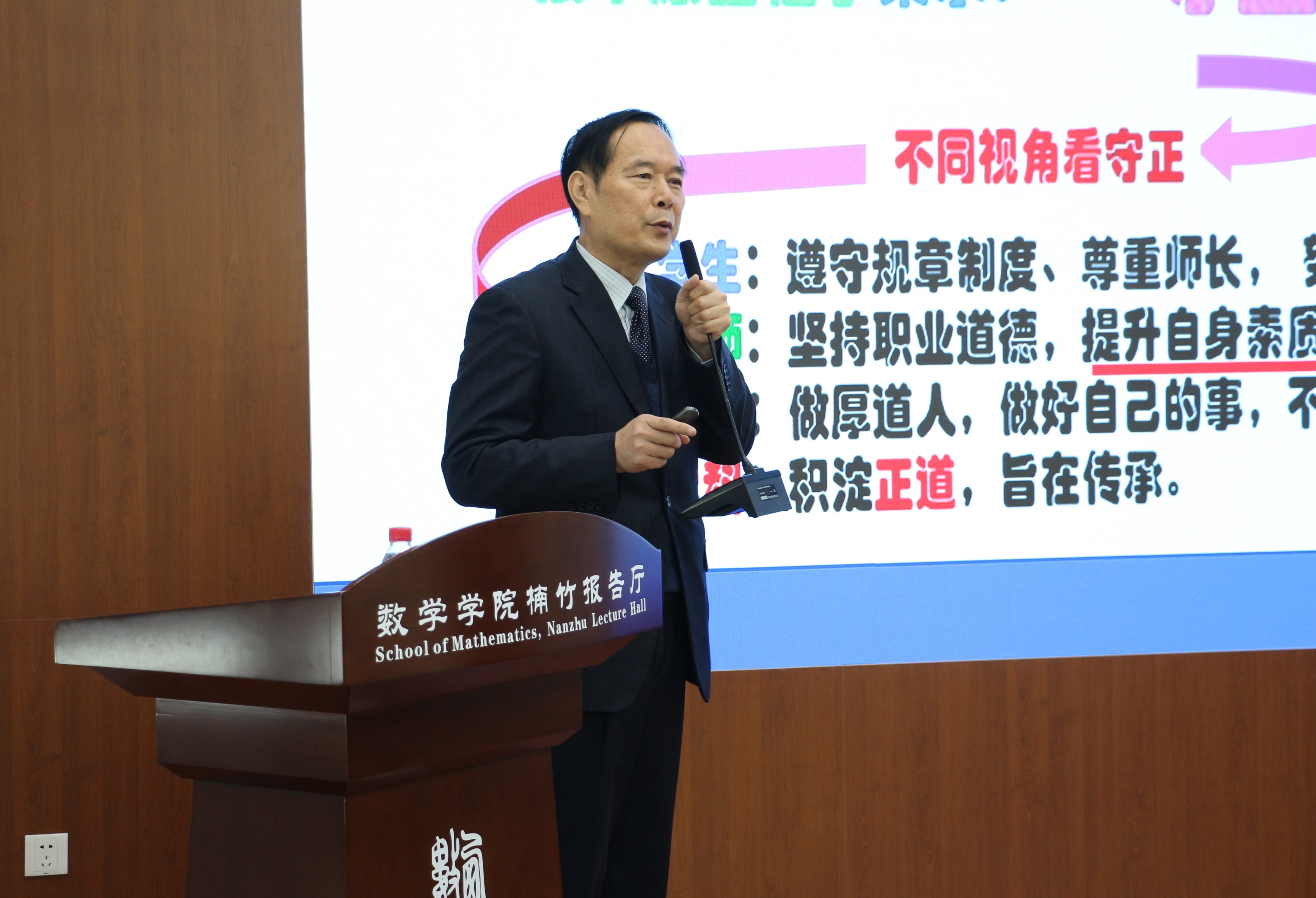二、强化使命敢担当,推动学院各项事业再提升。我们要持续加强三风建设,抓干部作风、抓师德师风、抓校风学风,扎实推动作风建设落地见效。不断强化全体教师员工的使命意识、担当意识,赓续数苑百年传承,满怀豪情再启新程。既要脚踏实地从学科百年发展中寻找智慧和力量,也要从服务国家和社会需求中寻找方案与突破,加强数学学科建设、提高自主创新人才培养。