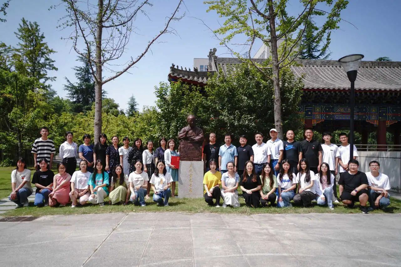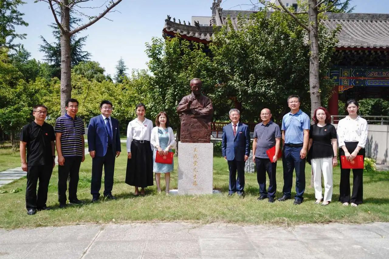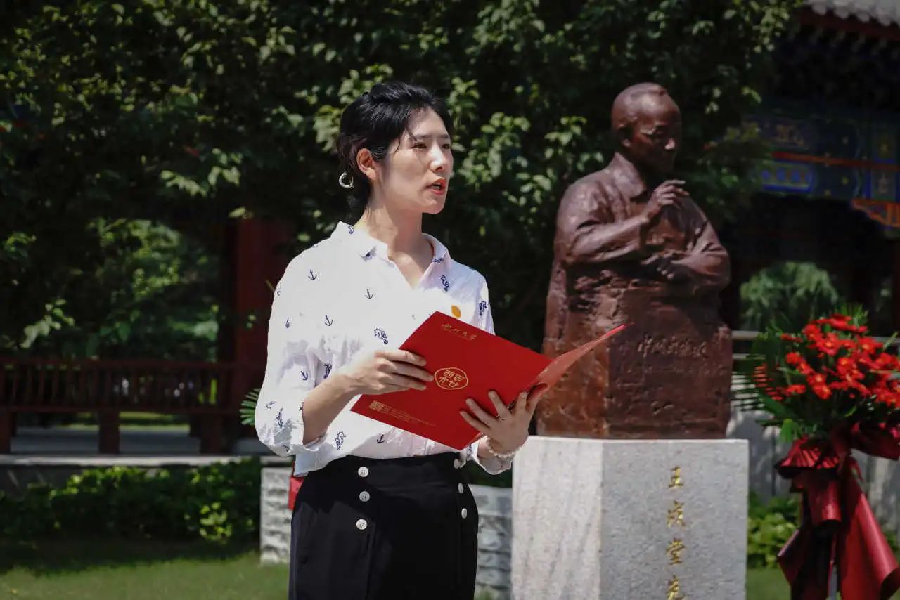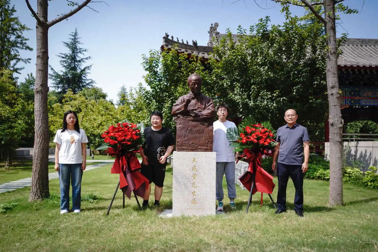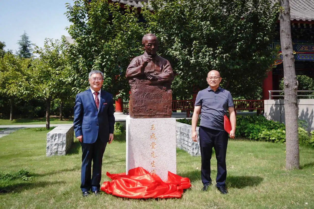 郭立宏、王兵共同为王戍堂先生铜像揭幕,学生代表和家属代表王兵向王先生铜像敬献鲜花;与会人员向王先生铜像鞠躬致敬。