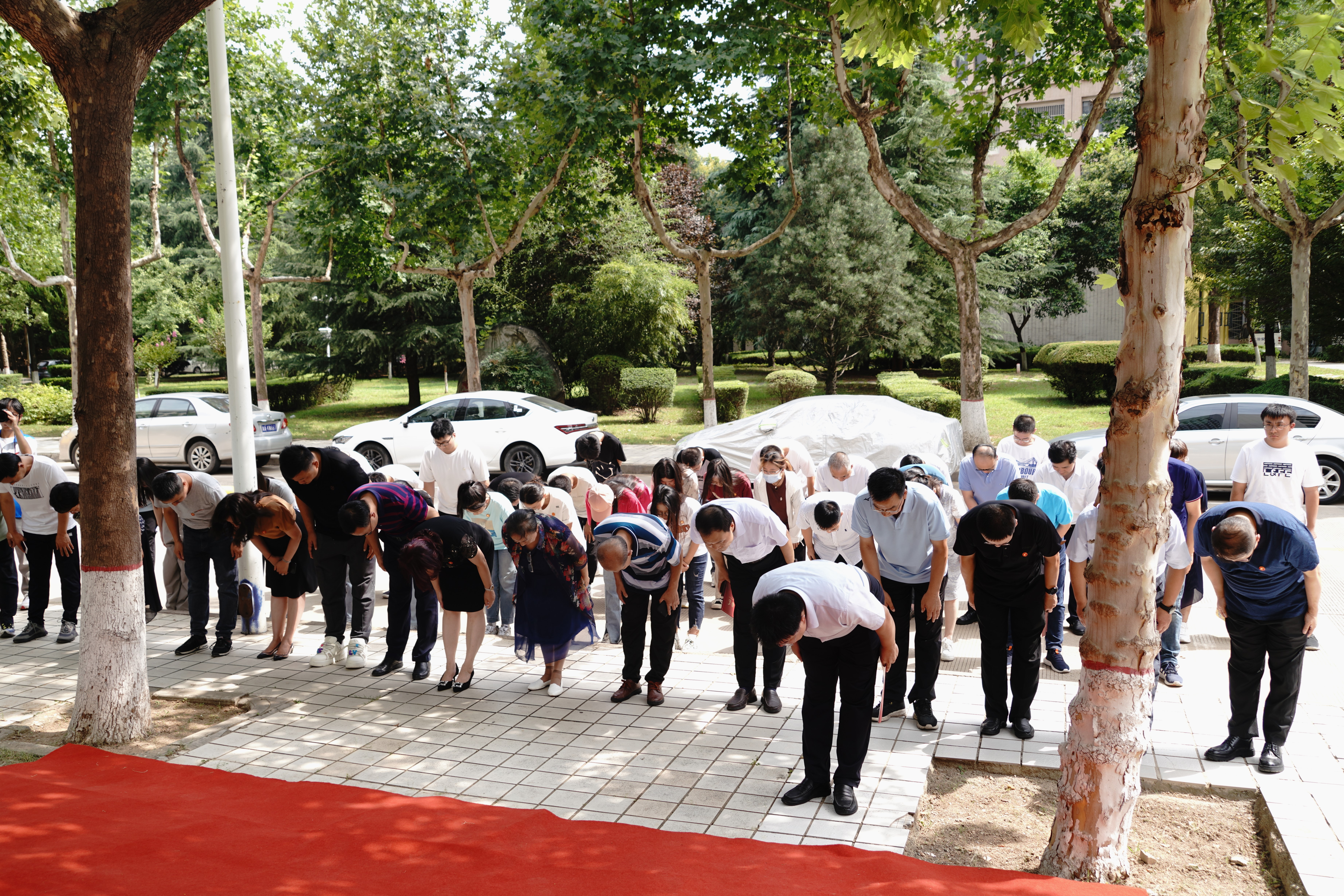 仪式上,熊有瑾、陈力勤、张军、胡永利、吴振磊和吕建荣共同为铜像揭幕;亲属代表熊有瑾和8455新葡萄官网版学生代表向熊先生铜像敬献鲜花;与会人员向熊先生铜像鞠躬致敬;李长宏向捐赠校友代表胡永利教授颁发捐赠证书;8455新葡萄官网版院长张瑞向铜像作者赵盾、家属代表熊有瑾颁发铜像敬塑纪念牌。