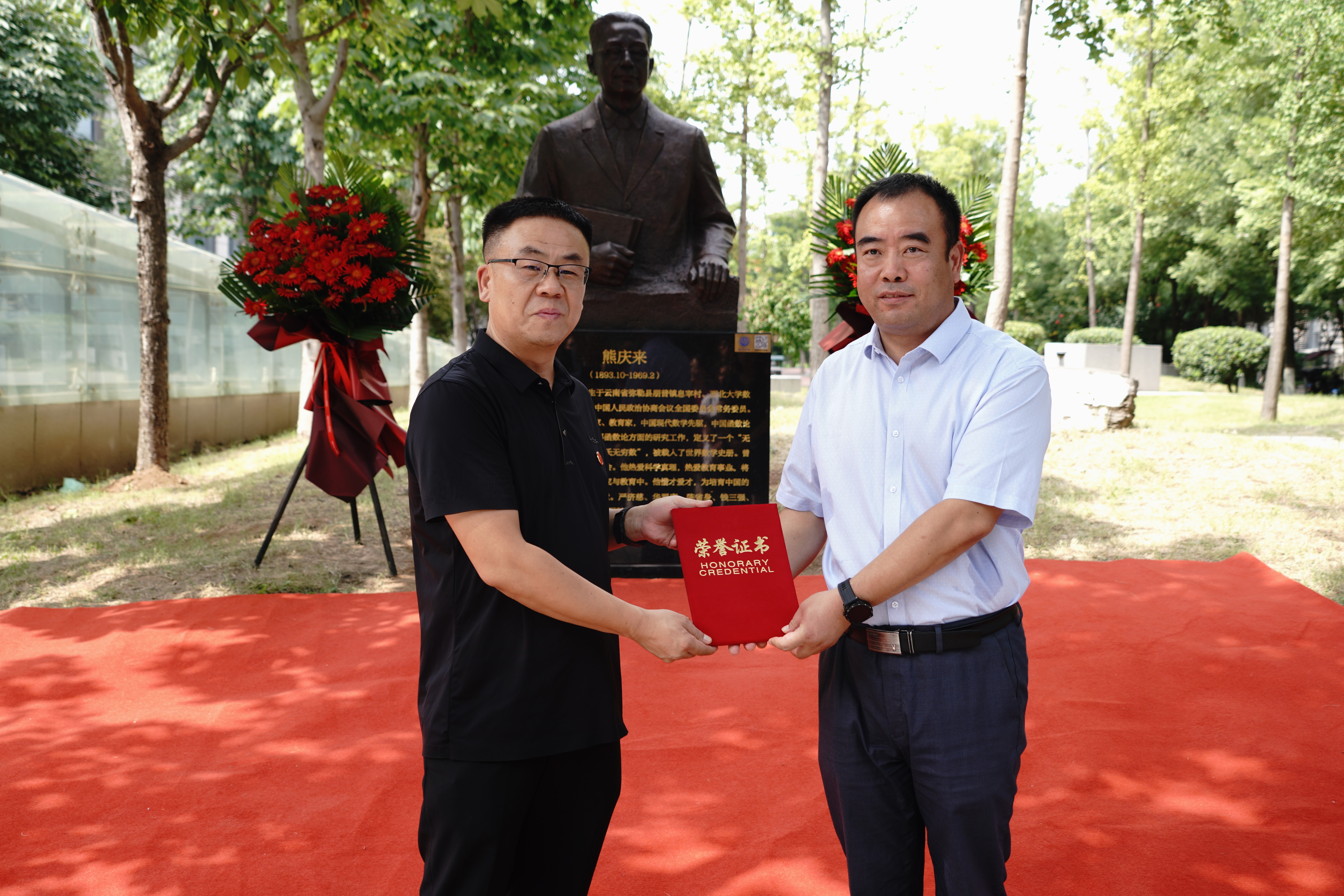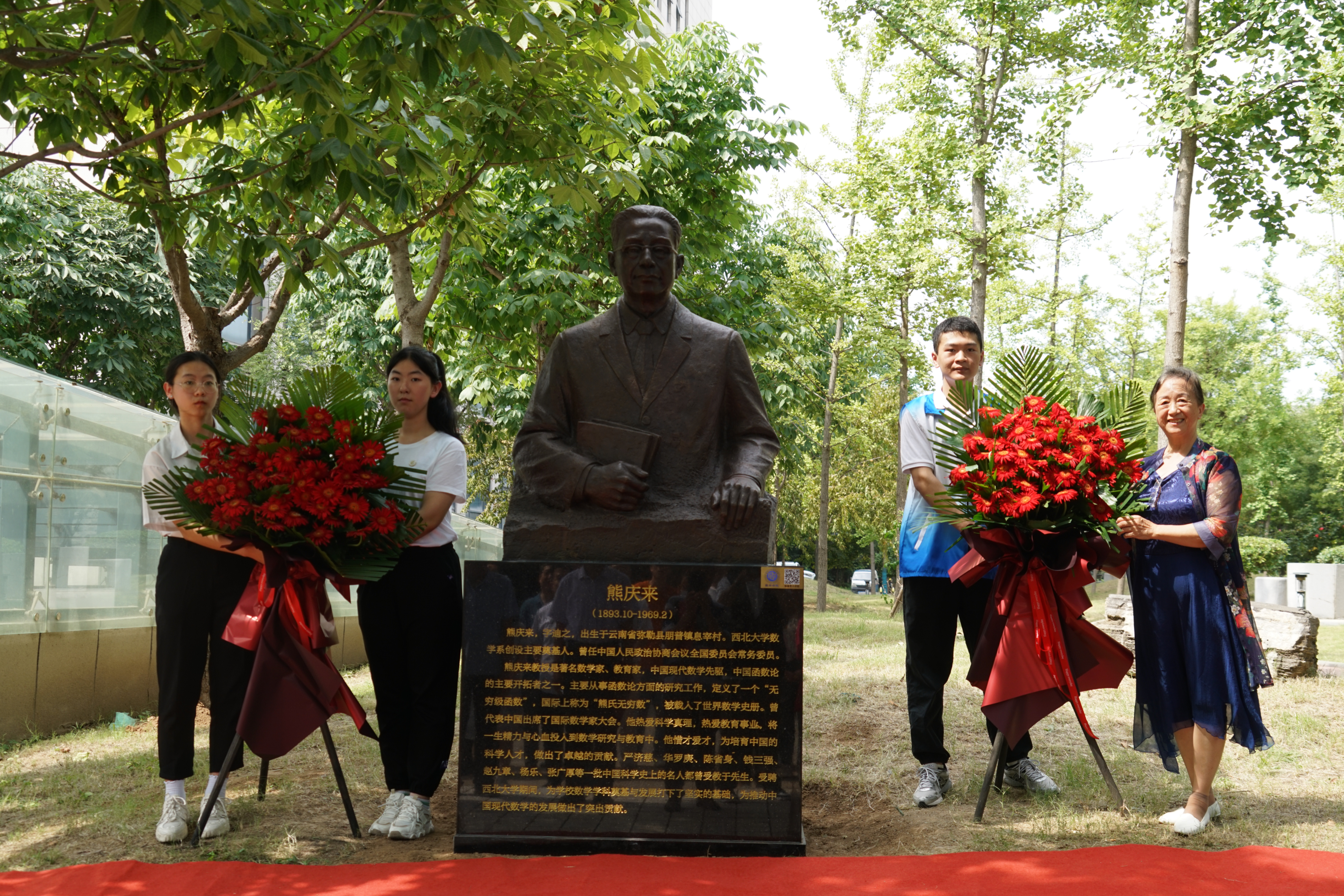 8月19日下午,在我校数学学科创设100周年、数学系创始人能庆来先生诞辰130周年之际,熊庆来先生铜像揭幕仪式在长安校区东学楼东侧隆重举行。熊先生亲属代表熊有瑾、陈力勤,校友代表张军、胡永利,铜像作者赵盾,校党委副书记吕建荣,校党委常委、宣传部部长田明纲,8455新葡萄官网版班子成员以及师生代表50余人参加了揭幕仪式,仪式由校党委常委、副校长吴振磊主持。