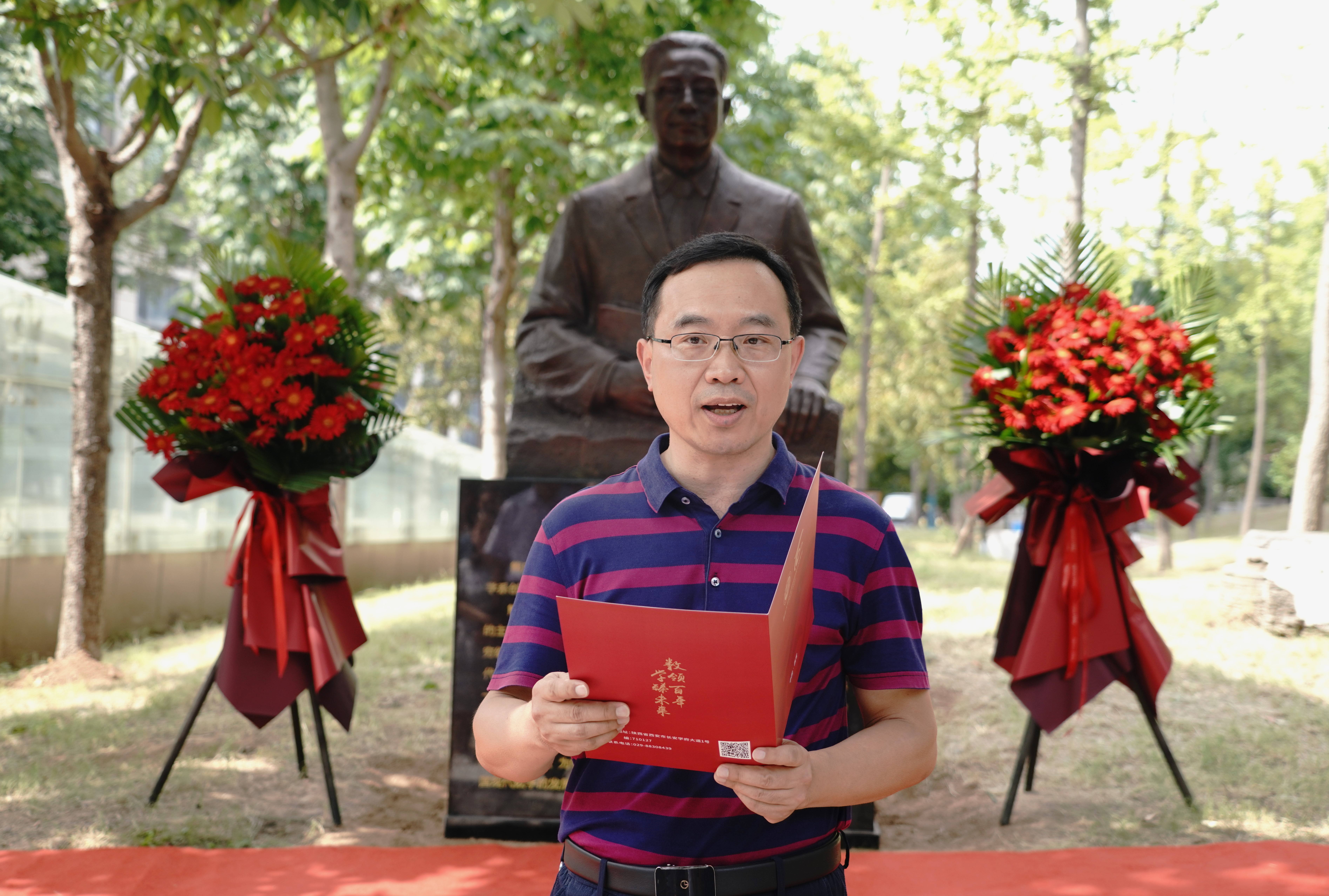 校党委常委、宣传部部长田明纲宣读了熊庆来先生铜像铭文,介绍了熊先生光荣伟大的一生。熊先生是著名数学家、教育家,中国现代数学先驱,中国函数论的主要开拓者之一。熊先生在数学领域深耕,以“熊氏无穷级”理论载入世界数学史册,为无穷级整函数、亚纯函数、代数体函数等问题的解决提供了新的视角;熊先生从云南走出,不畏艰辛,历经多次海外求学和国内工作调动,为中国数学事业默默奉献;熊先生是西大数学学科的重要奠基者,为推动中国现代数学的发展做出了突出贡献。