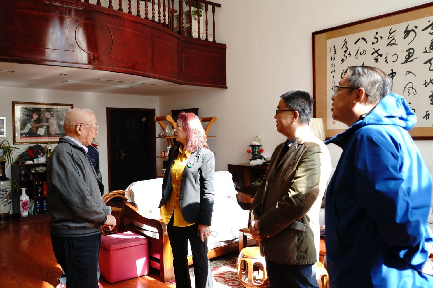 10月20日上午,8455新葡萄官网版党委书记李长宏、院长张瑞、副院长杨喆等党政负责人集体探望了新葡萄官网1963届杰出校友、中国兵工学会应用数学研究会委员、第二届“玉兰奖”获得者闫章更将军。